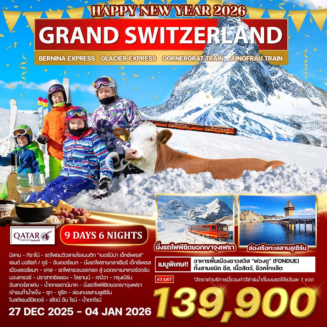 ทัวร์สวิตเซอร์เเลนด์ แกรนด์สวิตเซอร์แลนด์ MOUNTAIN & TRAIN ฉลองปีใหม่ 2026 10วัน 7คืน (TG)